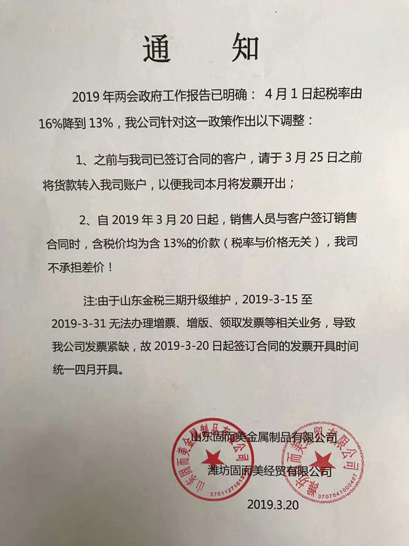 【重要通知】关于19年两会提出的税率调整情况,我司调整如下