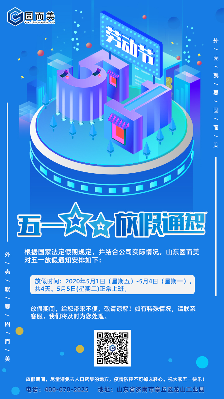 3、山东固而美祝各位新老客户五一劳动节快乐!