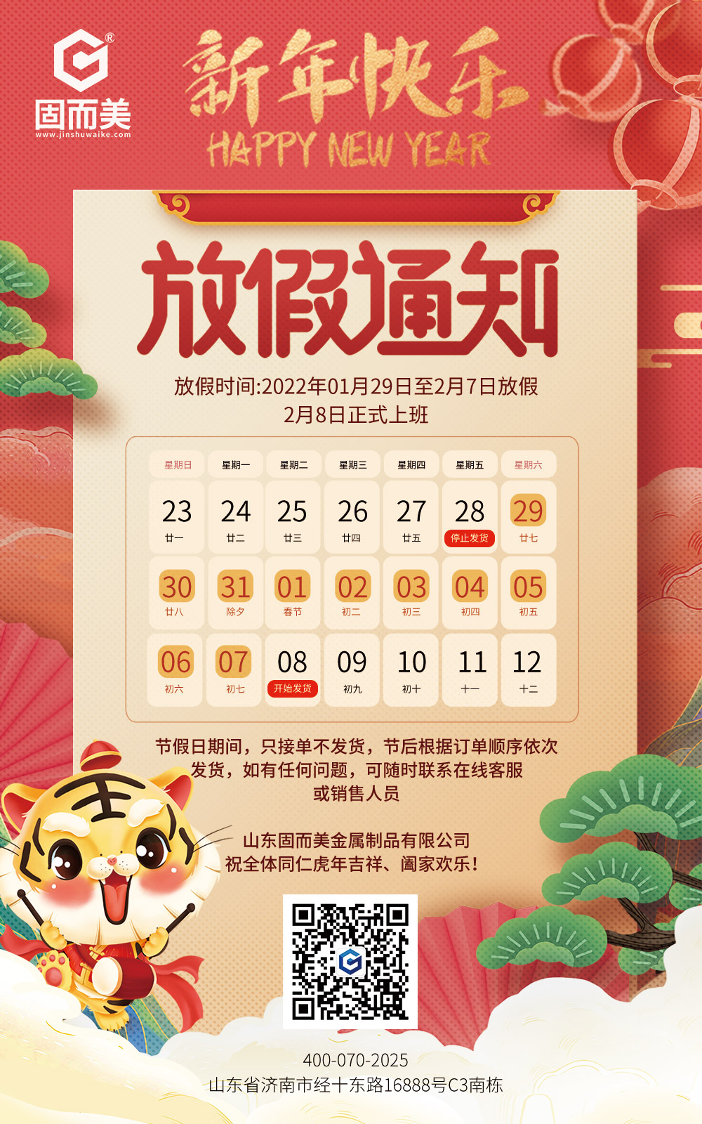 固而美祝大家新年快乐,身体健康,阖家团圆,虎年大吉!