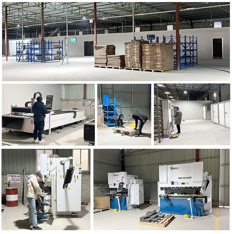 厂内设施应有尽有,包含切割区、折弯区、压铆区、焊接区、丝印区、喷塑区等。并配置专业质检人员,打包人员,保证出厂产品的合格率。现各个工序都已全面开工。