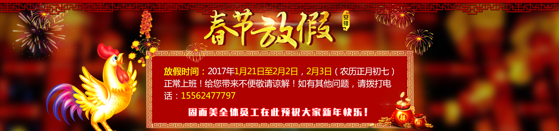 固而美放假时间为:2017年1月21日至2月2日,2月3日(农历正月初七)正常上班!给您带来不便敬请谅解!如有其他问题,请拨打电话15562477797