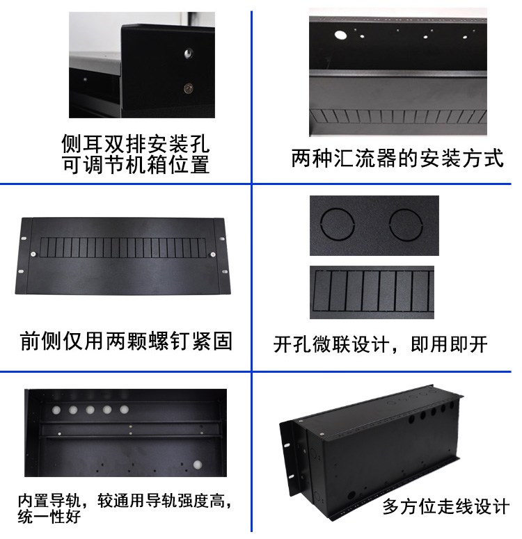 6、侧耳设置双排安装孔。可通过调整安装孔位置使侧耳保持与机箱平齐或者高出机箱表面。