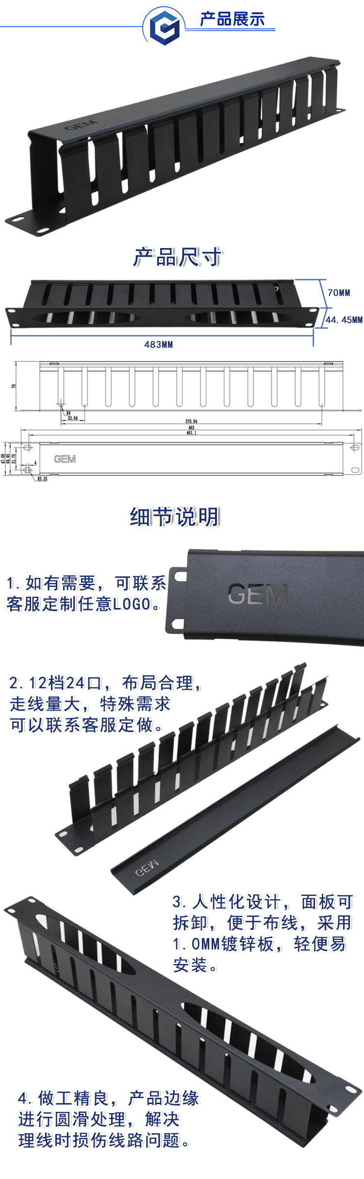 1.12档24口,布局合理,加大空间设计,走线量大,不会造成内部线路挤成一团,方便后期整理线路,如有特殊需求可以联系客服定做。