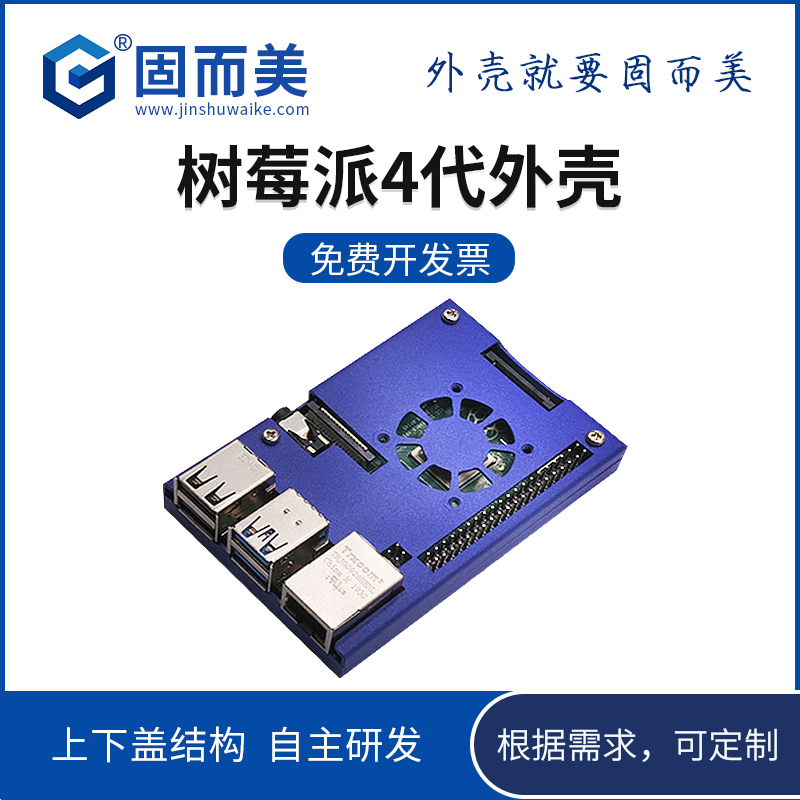 好马配好鞍,一套优秀的硬件要搭配更加成熟稳定的外壳,固而美是专注于做精密金属外壳的公司,专业提供树莓派4代和3代的产品外壳方案,支持按需定制,这款树莓派外壳材质上选用的是1.0mm的镀锌钢板,美观大气,结实耐用。外壳表面进行了蓝色静电喷塑,造型时尚,科技感十足!结构上选用了上下盖的结构方式,支持安装卡扣,易安装拆卸,维护检修,简约大方。