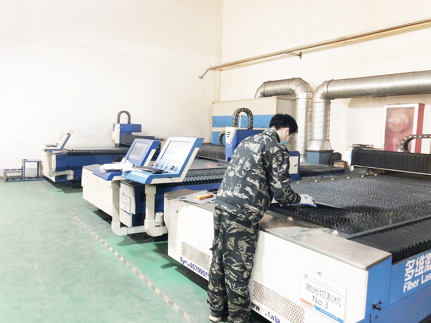 第一步下料:下料是指确定制作某个设备或产品所需的材料形状、数量或质量后,从整个或整批材料中取下一定形状、数量或质量的材料的操作过程。操作时就需要根据产品图纸的要求,在专用切割机上将板材切下。