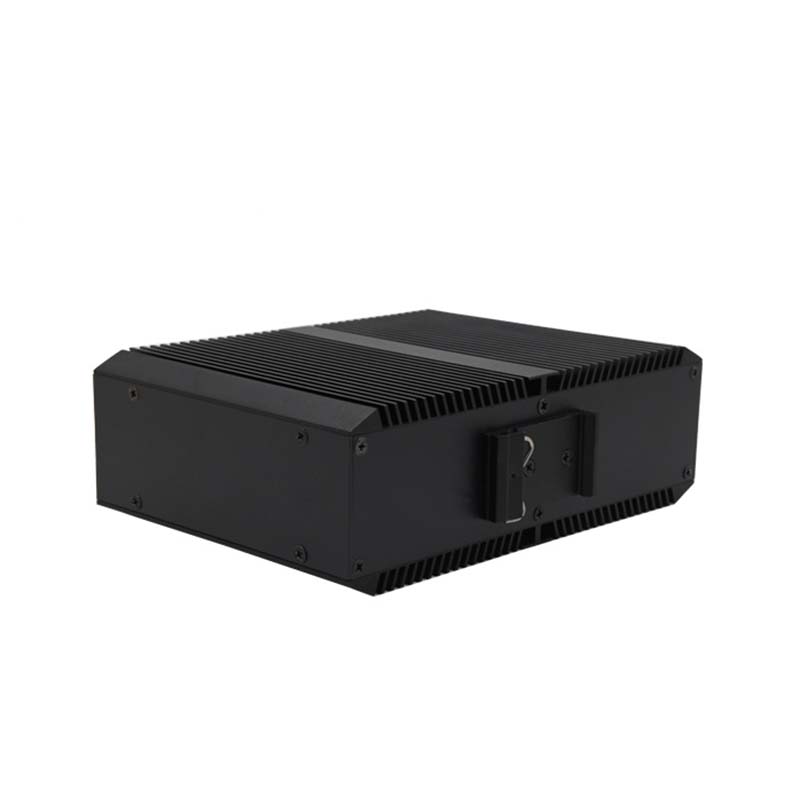 *组成结构:铝型材右片、钣金下片、钣金后片、导轨卡扣、散热柱、铝型材左片、钣金上片、散热柱、钣金前片